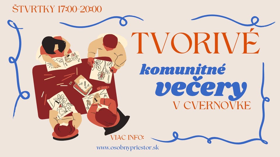03/03/2026 Venujte 2 % 1–máj 1.MÁJ – Deň otvorených ateliérov 2026 10/03/2026 Kultúra potrebuje priestor < Späť > Ďalej Program Zobraziť viac 01/04 streda 19:30 Piesne z Kabinetu #20: Elsdeer (DE) / Sam and Trevor (DE) #koncert 04/04 sobota 10:00 Žirafka v divadle – Jaro – Kúzelník 07/04 utorok 20:00 Kee Avil (CA) / Aki Traar (AT) #koncert 09/04 štvrtok 17:30 Tvorivý komunitný večer v Cvernovke pri víne #workshop 09/04 štvrtok 19:30 Flore Laurentienne (CA) / Božské Soaré #koncert 11/04 sobota 10:00 Žirafka v divadle – Divadlo NaHojdačke – TDPASLÍK #divadlo #deti 12/04 nedeľa 10:00 Soft Core Sundays (kolektívna pohybová prax) #workshop #Tanec 14/04 utorok 19:00 Kvízový utorok v Novej Cvernovke – 5. ligové kolo #kviz 15/04 streda 19:00 Mark Haddon – Nikki Böjtösová: Čudná príhoda so psom (premiéra) – VŠMU #divadlo 16/04 štvrtok 19:00 Mark Haddon – Nikki Böjtösová: Čudná príhoda so psom (repríza) – VŠMU #divadlo 18/04 sobota 10:00 Žirafka v divadle – Divadlo MORGONROCK – O diviačikovi #divadlo #deti 25/04 sobota 10:00 LINORYTOVÝ KURZ #kurz 28/04 utorok 19:00 Kvízový utorok v Novej Cvernovke – 6. ligové kolo #kviz 01/05 piatok 10:00 1.MÁJ – Deň otvorených ateliérov 2026 #festival 07/05 štvrtok 09:00 tanC: Tanec na dotyk #performancia 10/05 nedeľa 19:00 caroline (UK) #koncert 12/05 utorok 19:00 Kvízový utorok v Novej Cvernovke – 7. ligové kolo #kviz 15/05 piatok 22:00 Pazucha: Zora Jones (dj) / t0ni / FVLCRVM (dj) / Ursula Sereghy / TRANSmisia #party 26/05 utorok 19:00 Kvízový utorok v Novej Cvernovke – 8. ligové kolo #kviz 09/06 utorok 19:00 Kvízový utorok v Novej Cvernovke – 9. ligové kolo #kviz 23/06 utorok 19:00 Kvízový utorok v Novej Cvernovke – 10. ligové kolo #kviz < Späť > Ďalej Zobraziť viac Aktuality Zobraziť viac 23/03/2026 23.3. – 27.3. 2026 16/03/2026 16.3. – 20.3. 2026 10/03/2026 Kultúra potrebuje priestor 09/03/2026 9.3. – 13.3. 2026 03/03/2026 Venujte 2 % #pomaham kulture #2 percenta 02/03/2026 Hľadáme posily: Stážista*ka na komunikačnom Novej Cvernovky 23/02/2026 23.2. – 27.2. 17/02/2026 16.2. – 20.2.2026 11/02/2026 Hľadáme posily: Účtovník*čka NC 10/02/2026 9.2. – 13.2. 2026 < Späť > Ďalej Zobraziť viac Ateliéry Zobraziť viac KK BAGALA – VYDAVATEĽSTVO PÔVODNEJ TVORBY #1maj #literatura Archimera #architektúra Ateliér Osobný priestor #grafika #1maj #deti #sebarozvoj NAURES Production #produkcia Mediclo #odev ninja film #produkcia #film #vzdelávanie STUDIO OCTŌ Psychoterapeutka vo výcviku Ľubica Fandl Drangová #psychoterapia Akadémia kritického myslenia #vzdelávanie Komunitná Garáž #dielňa < Späť > Ďalej Zobraziť viac Gastro Skrytý bar #gastro Giraffe Bakery #gastro #1maj Dvanásť duší #gastro < Späť > Ďalej Nákupná zóna Prímerie Bookshop #1maj #literatura Čierne diery #architektúra mile shoproom #odev #1maj Lebo Mädveď #predajňa #1maj People on Earth #odev #1maj < Späť > Ďalej Booking podujatíKrátkodobý prenájom booking@novacvernovka.eu Dlhodobý prenájom info@novacvernovka.eu Newsletter Súhlasím s posielaním noviniek Leave this field empty if you're human: