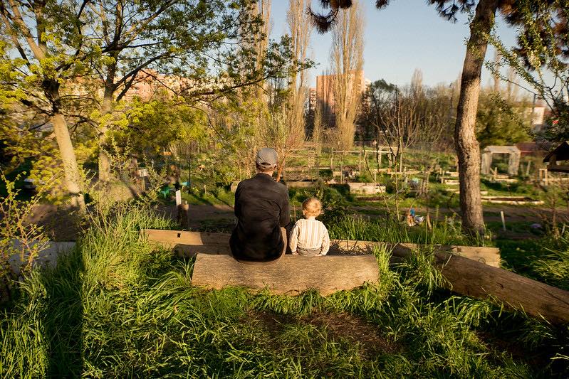 Nuž a čo by to bolo za throwback, keby sme si nezaspomínali na obdobie projektu Suť na Park. Poháňaní zmesou cnostných aj pragmatických motivácií – zrecyklovať čo najväčšie množstvo sute a znížiť tak náklady za odvoz vzniknutého stavebného odpadu. Všetky chodníky aj suťokruh sme spevnili recyklátom sute, ktorý prepúšťa a zadržiava vodu a pomáha tak udržiavať príjemnú mikroklímu.