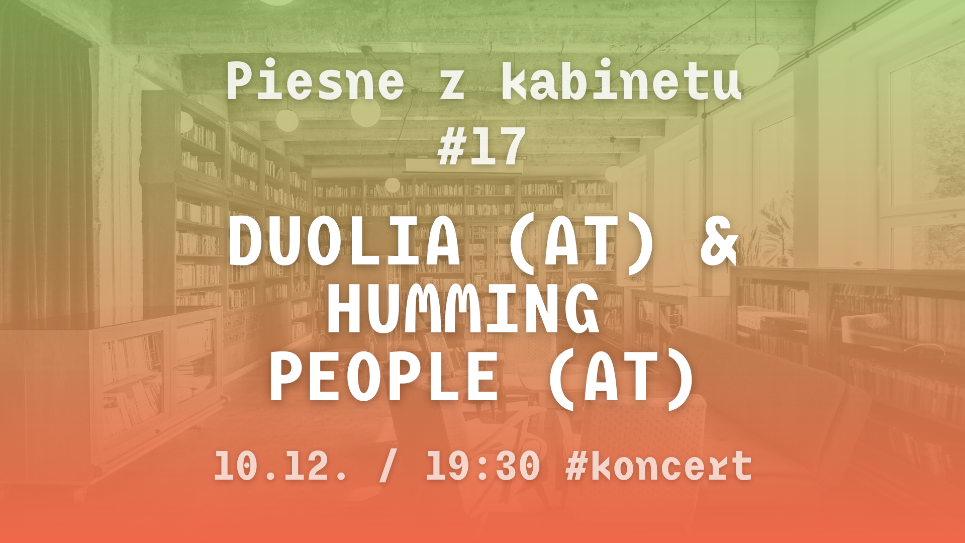 Piesne z kabinetu sa vracajú so svojím 17. vydaním a do intímneho priestoru Kabinetu pomalosti (Nová Cvernovka) prinesú nežnosť, harmóniu a melanchóliu v podaní rakúskeho dua DuoLia. (AT).