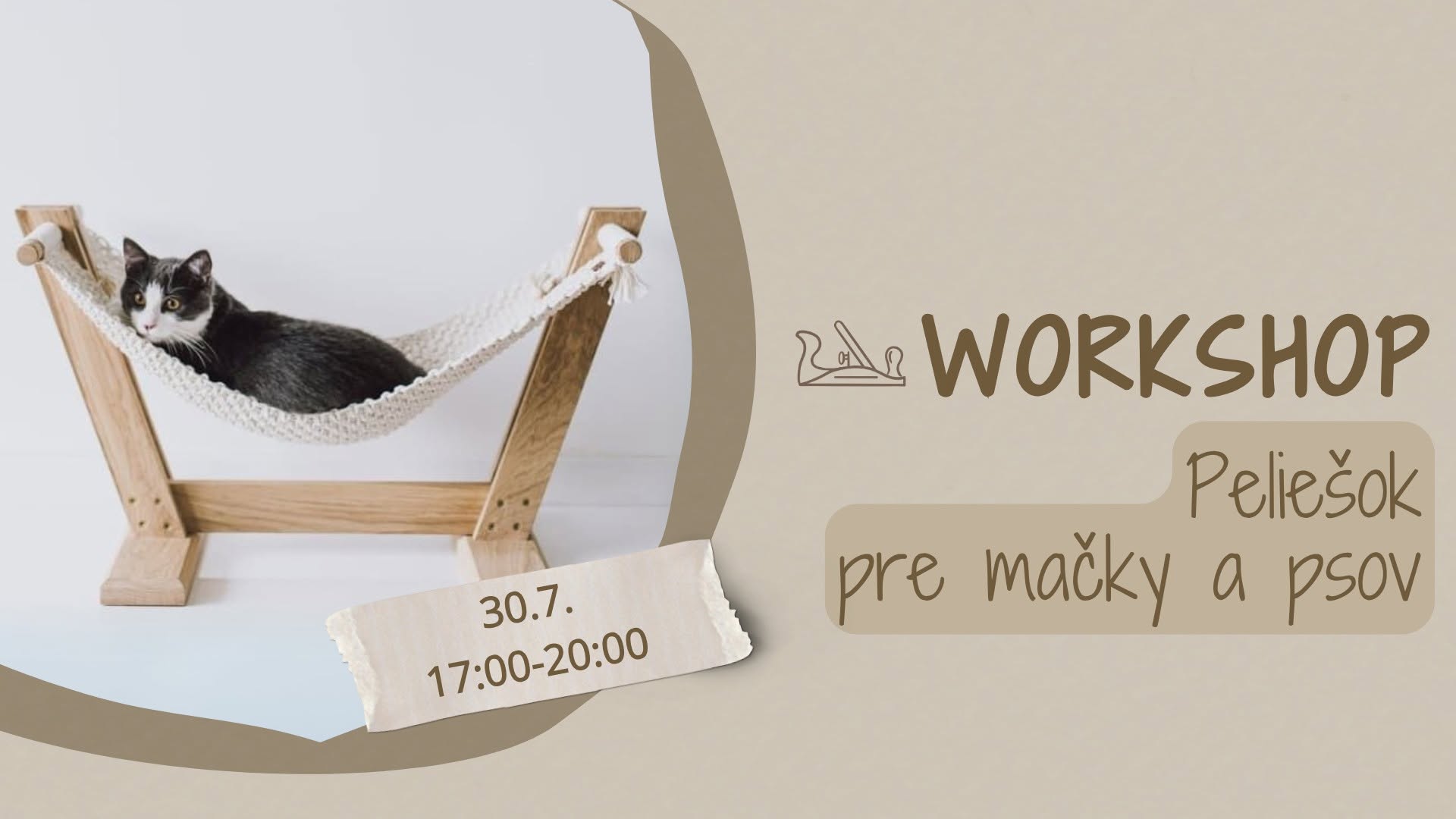 Chcete svojho štvornohého kamaráta prekvapiť niečím výnimočným a zároveň štýlovým? Na tomto workshope si vlastnoručne vyrobíte útulný peliešok pre mačky alebo menšie psy – s dreveným rámom a pohodlnou hojdacou podložkou!
