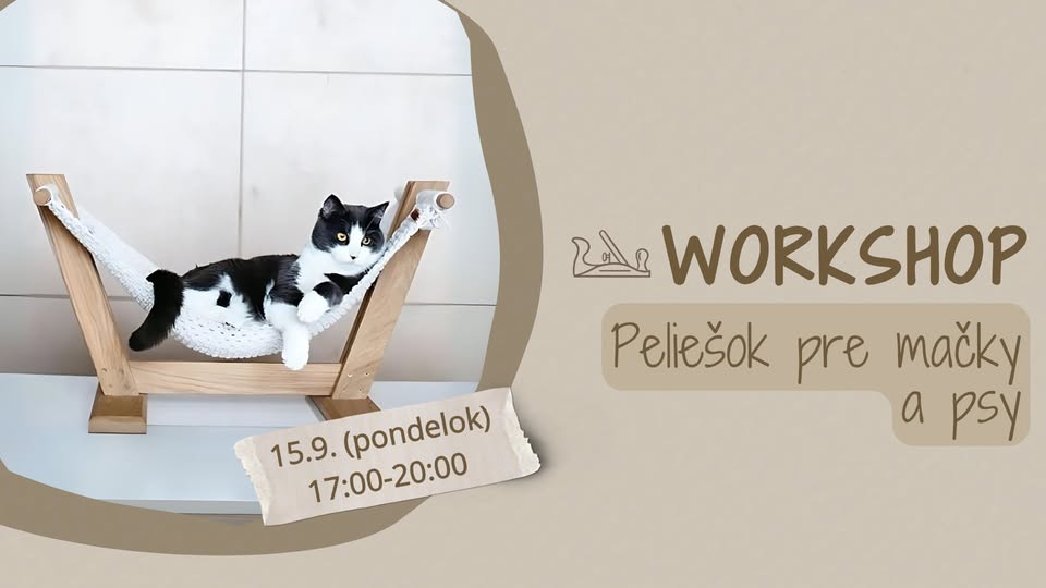 Chcete svojho štvornohého kamaráta prekvapiť niečím výnimočným a zároveň štýlovým? Na tomto workshope si vlastnoručne vyrobíte útulný peliešok pre mačky alebo menšie psy – s dreveným rámom a pohodlnou hojdacou podložkou!